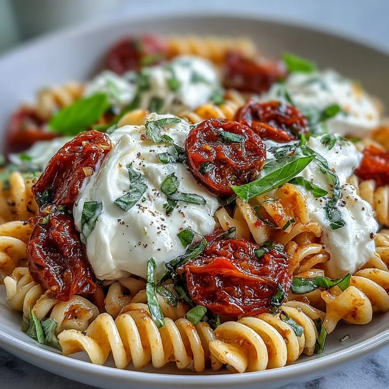 I once whipped up this dish after running late for a small gathering with friends—my hands stained red from halving tomatoes, the basil perfuming the air. Everyone gathered near the stove, sneaking tastes, and the kitchen was full of laughter as we debated who could tear burrata most artfully. It turned out the messier, the better, and nobody minded a little cheese on their fingers.